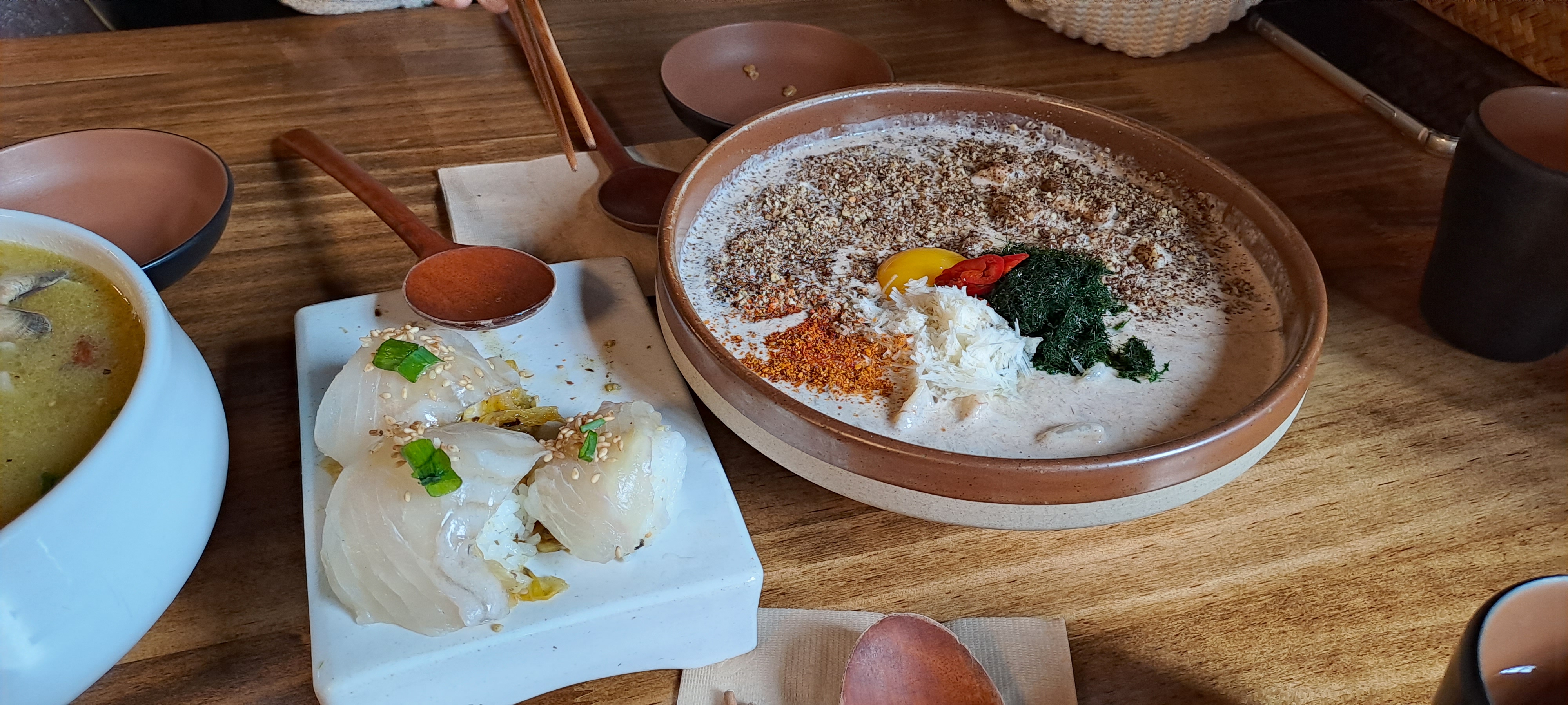 묵은지회말이, 봉골레칼국수, 고사리크림수제비, 감태타르타르 각 1인분씩 주문!